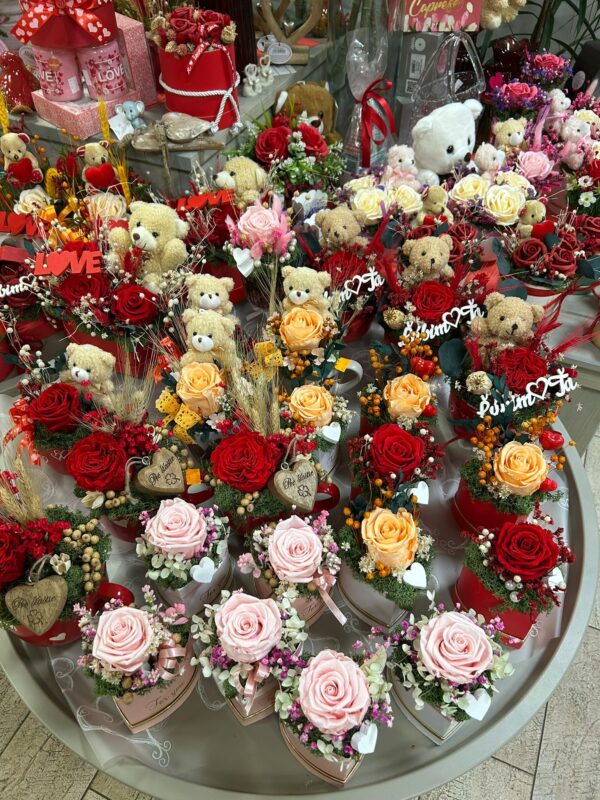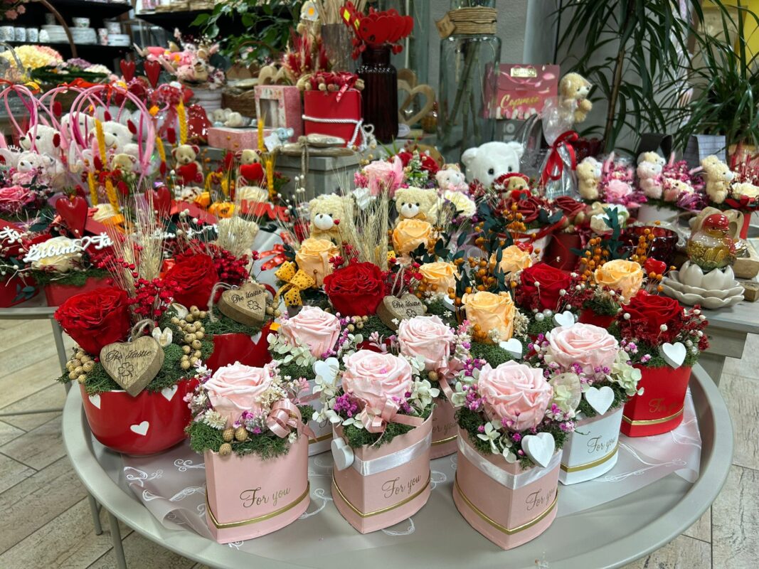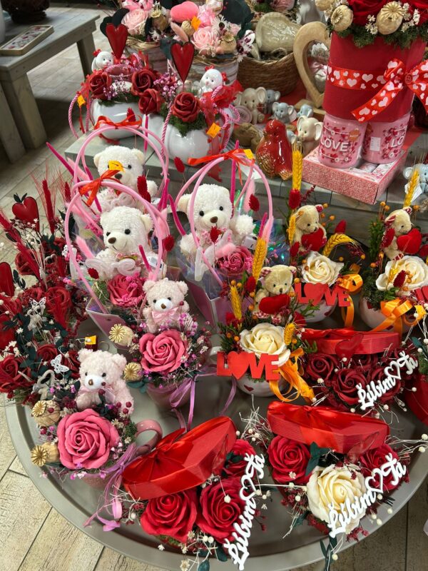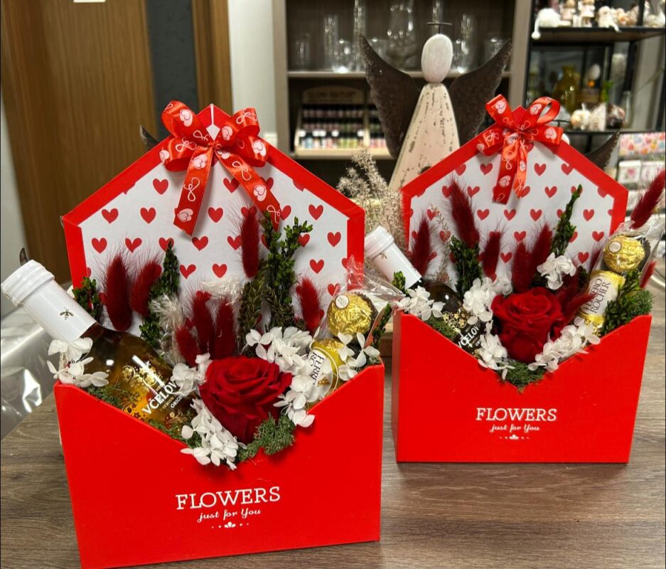 U nás si vyberieš valentínsky darček od A po Z – ruže, kytice, aranžmány, delikatesy, víno, sviečky, macíkov, figúrky aj milé drobnosti.